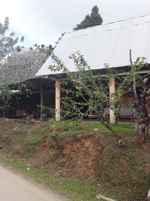 Center of town, new changes, road is paved just this small section and roofs are changing from thatch to metal. Marina's house with its new look !