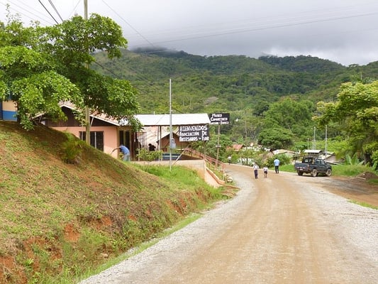During the wet season, do not turn off at the first sign, but continue north about 15 -20 minutes/23km more, having passed the right turn to San Vito, turn left at 'Territorio Indigena Terraba'. After 10 minutes on this road, there is a Y junction, with Flaco’s Bar on the right. Take the left fork, then bear right at the white church. Continue on this road about 20 minutes passing villages, you will come to a T junction with a very small blue grocery store on the right. Turn left and follow this road 5 min. until you come to the museum with the stone sphere in front to the left, then Marina’s rancho.